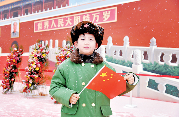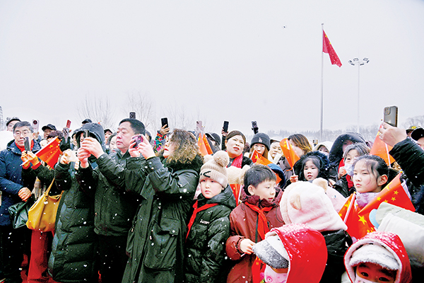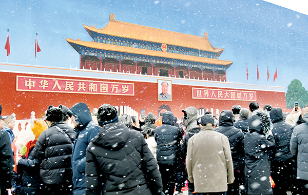 1月18日,郊區(qū)平坦鎮(zhèn)桃林溝景區(qū)內(nèi)歡聲笑語、喜氣洋洋,備受關(guān)注的巨幅“天安門”彩繪墻落成,市民、游客紛紛冒雪來到彩繪墻前打卡、拍照留影。