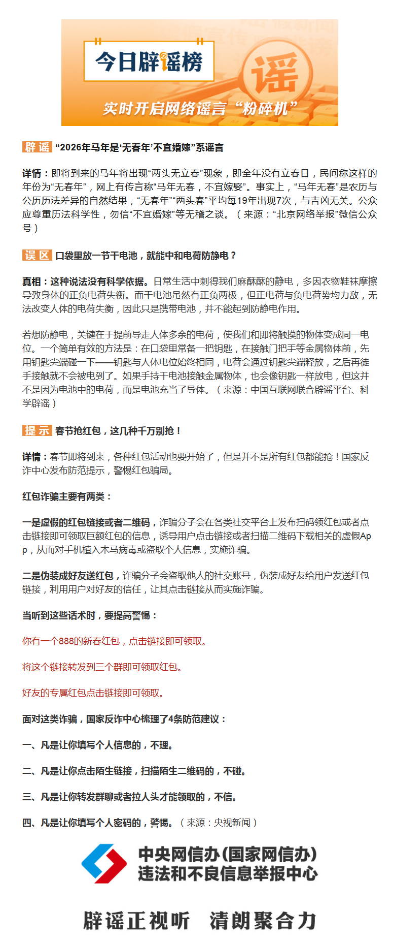 “2026年馬年是‘無春年’不宜婚嫁”系謠言(2026·02·14)