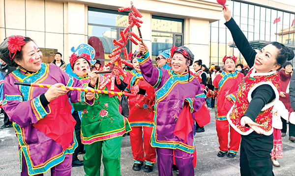 2月11日,盂縣孫家莊鎮(zhèn)的民間藝人在鎮(zhèn)文化廣場進行民俗展演。大秧歌、跑旱船、鑼鼓、戲曲、踩高蹺等節(jié)目精彩紛呈,為當(dāng)?shù)厝罕姭I上了一道豐盛的節(jié)日文化大餐。程 瑜攝