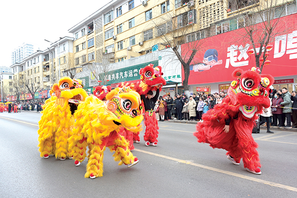 2月11日,城區(qū)2025年元宵節(jié)街頭民俗展演活動在德勝東街上演,秧歌、舞獅、踩高蹺……精彩紛呈的節(jié)目輪番展示,吸引市民駐足觀看。晉向華攝