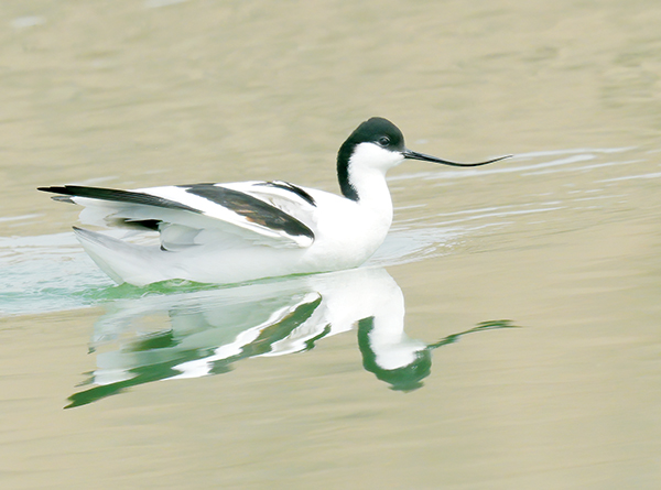 ? ?3月26日,盂縣華北奕豐生態(tài)園內(nèi),4只反嘴鷸飛翔在蓄水池中。反嘴鷸身姿輕盈,時而整齊編隊飛行,時而分散開來覓食。在陽光的照耀下,黑白相間的羽毛閃爍著光芒,與波光粼粼的水面相互映襯,構(gòu)成了一幅和諧美妙的生態(tài)畫面。程 ?瑜攝