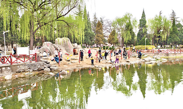 清明小長假,天氣晴朗,陽光明媚。市民紛紛走出家門,在桃紅柳綠間親近自然,踏青賞春,盡享假日時光。??晉向華攝