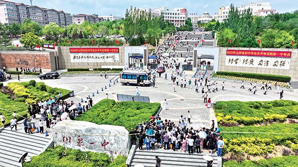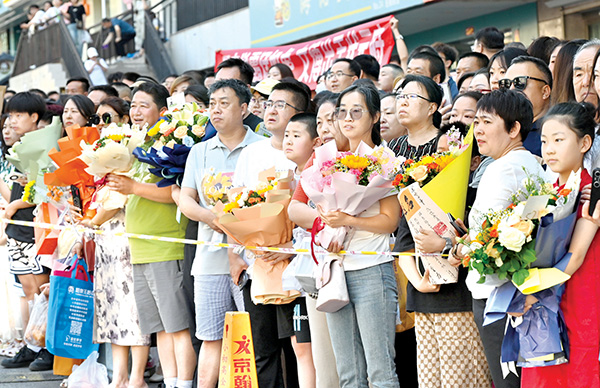 6月22日,在陽泉十一中考點外,家長們用鮮花迎接即將走出考場的考生。晉向華攝