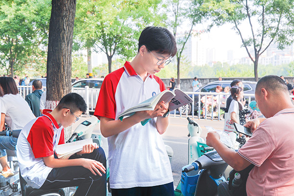 6月20日上午8時許,陽泉三中考點外,考生利用最后的時間抓緊復(fù)習(xí)。張澤慧攝