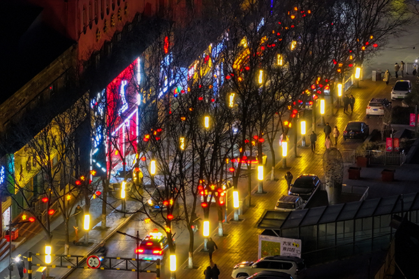 1月28日,夜幕降臨,懸掛在北大街、南大街、平陽東街等主干道兩側(cè)行道樹上的彩燈陸續(xù)點(diǎn)亮,五光十色,璀璨奪目。據(jù)了解,今年我市新春亮化工程巧妙運(yùn)用現(xiàn)代照明技術(shù),紅燈籠、五彩花燈與LED燈帶相互交織、交相輝映,用光影造型勾勒城市年味,為市民打造沉浸式節(jié)日視覺盛宴。張澤慧攝